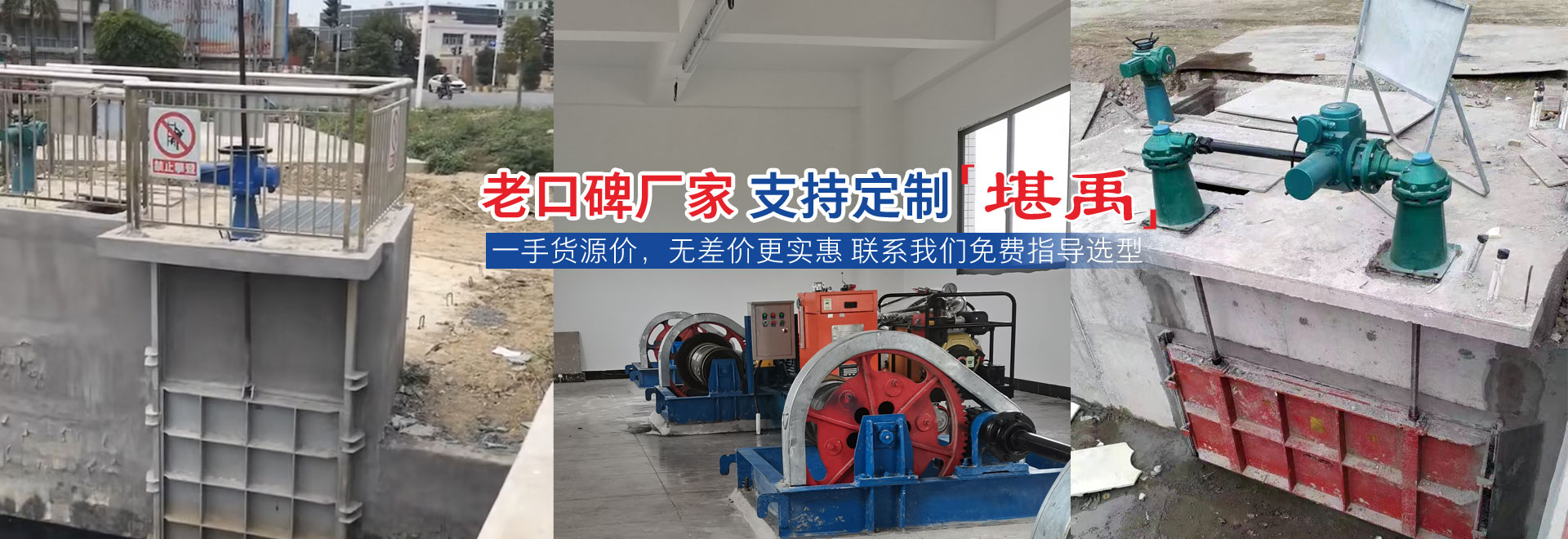 新河縣堪禹水工機械有限公司是水工機械行業,是融科研、制造、金屬結構、鑄造、機加工、熱處理、總裝為一體的綜合性企業。我廠主導產品有:1.拍門分為:鑄鐵、鋼制、復合材料、復合材料拍門又多指玻璃鋼拍門,從200mm-2600mm多種型號規格。2.螺桿式啟閉機分為:平推式、手輪式、側搖式、手搖式、電裝式、手電兩用式、直連式、單吊點及雙吊點式螺桿啟閉機。3.卷揚式啟閉···